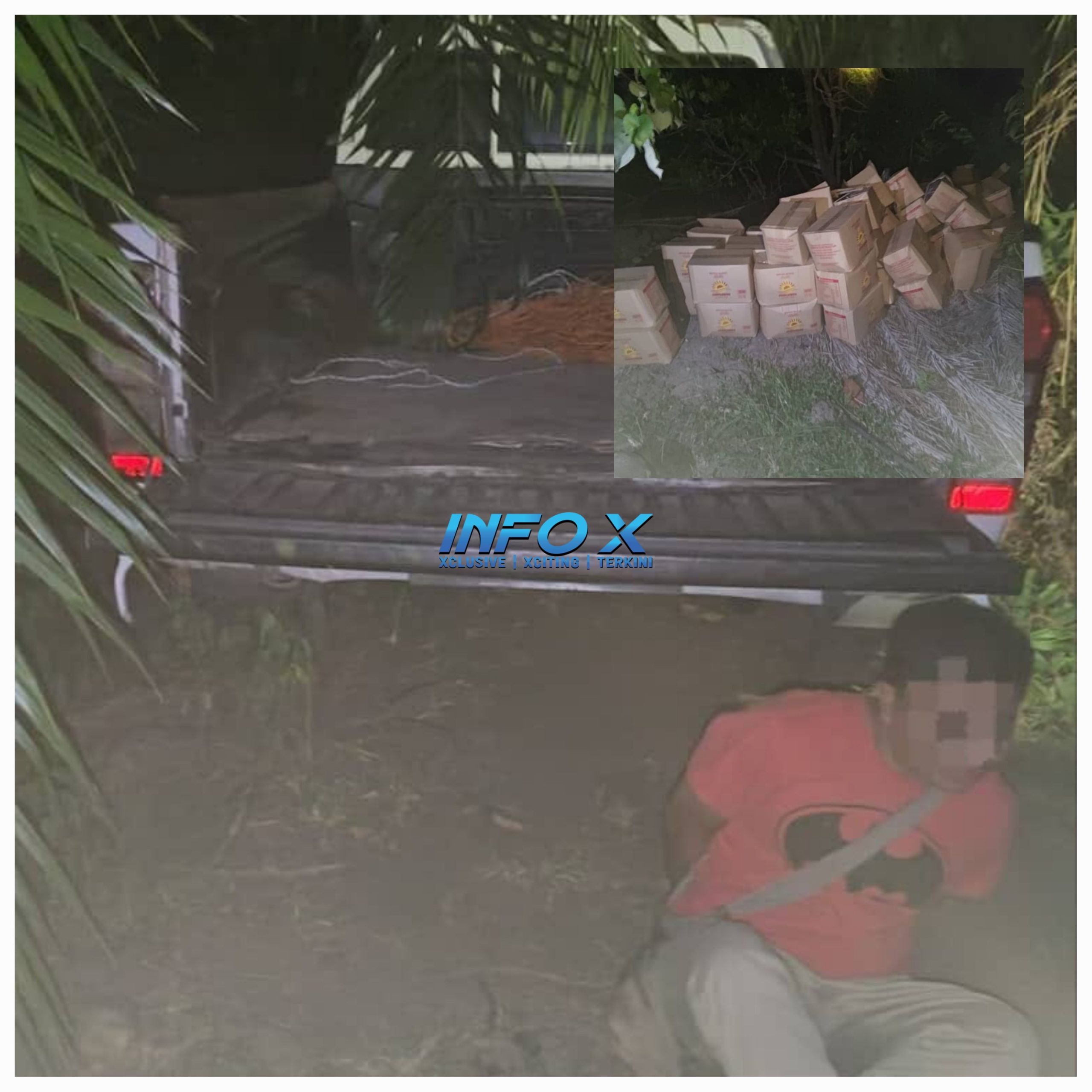 Suspek berusia 40 tahun ditahan bersama 35 kotak minyak masak paket satu kilogram di kawasan pesisir pantai Kampung Takun, Tungku, di sini, jam 10.30 malam.