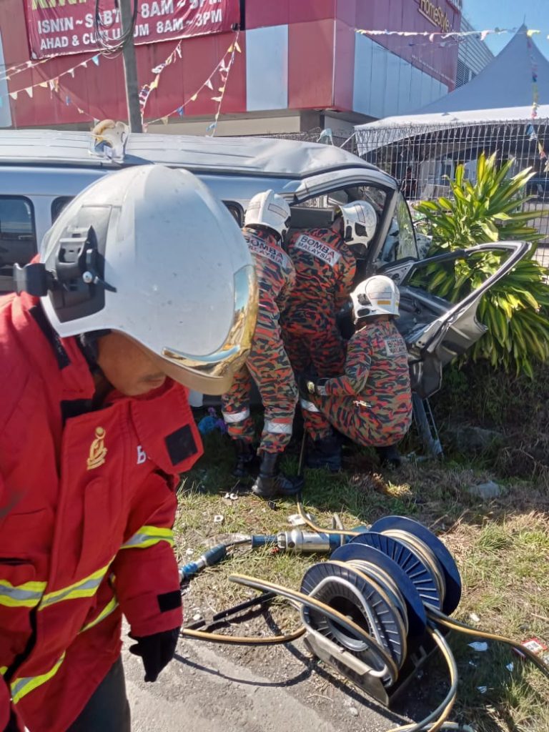 “Terdapat seorang lelaki tersepit (pemandu van) berjaya dikeluarkan oleh pasukan bomba.