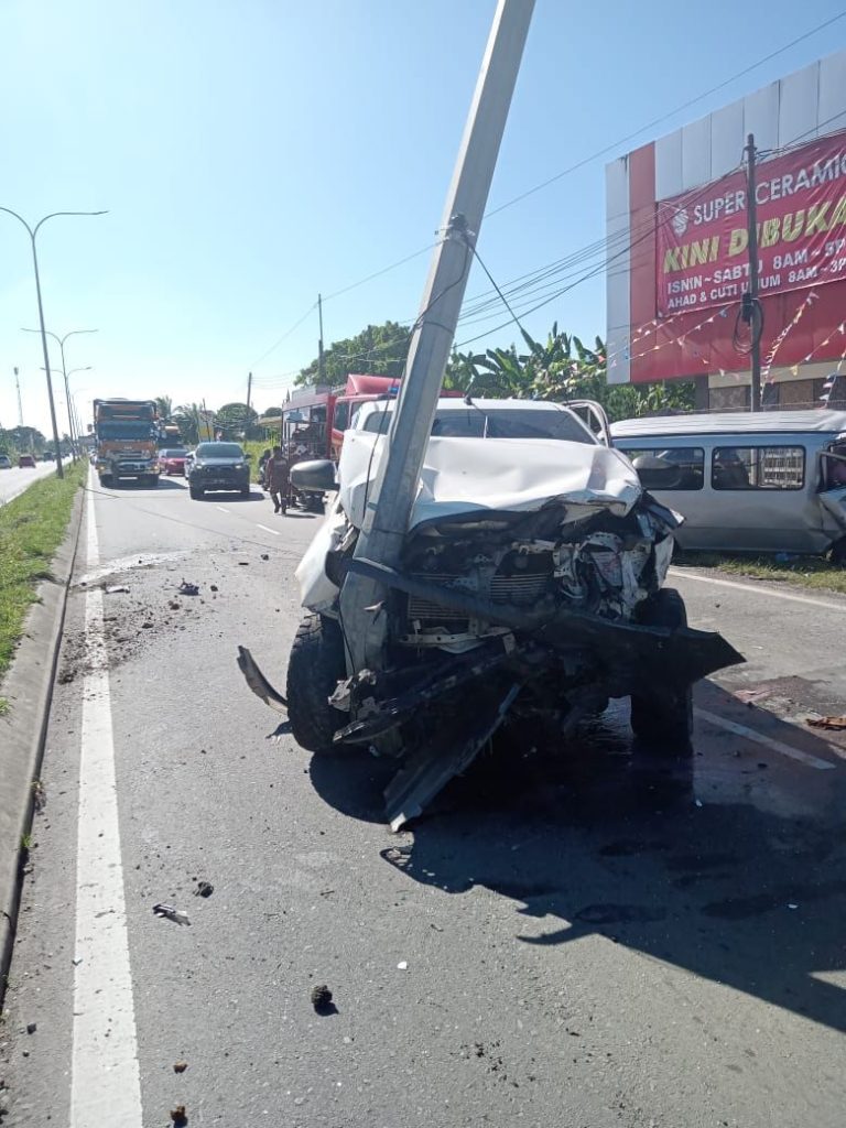 “Dua mangsa dalam kenderaan pikap mengalami cedera ringan dihantar ke hospital menggunakan ambulans untuk rawatan lanjut.
