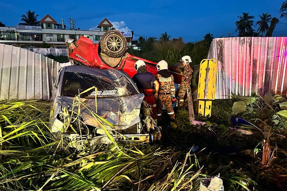 “Sebaik tiba di lokasi kejadian, secara tiba-tiba kenderaan pacuan empat roda telah melanggar sebuah kereta dari arah belakang sehingga kedua-duanya terbabas ke arah kiri bahu jalan.