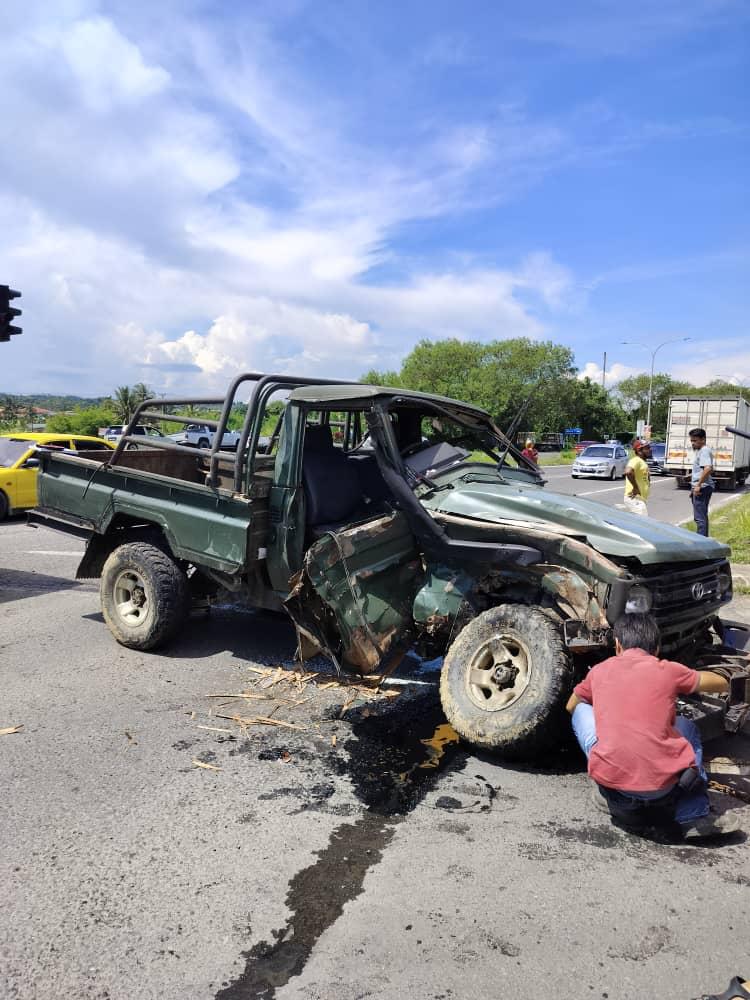 “Lori itu hilang kawalan lalu masuk ke lorong bertentangan dan bertembung dengan sebuah kenderaan pikap dipandu lelaki warga emas.