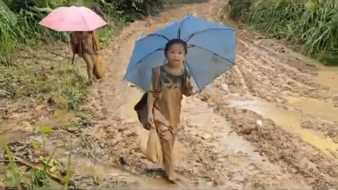 “Luluh hati saya melihat mereka berjalan jauh untuk kembali ke sekolah. Semoga murid ini tetap bersemangat untuk belajar dan rajin datang sekolah, walaupun terpaksa melalui keadaan yang cukup sulit,” katanya.