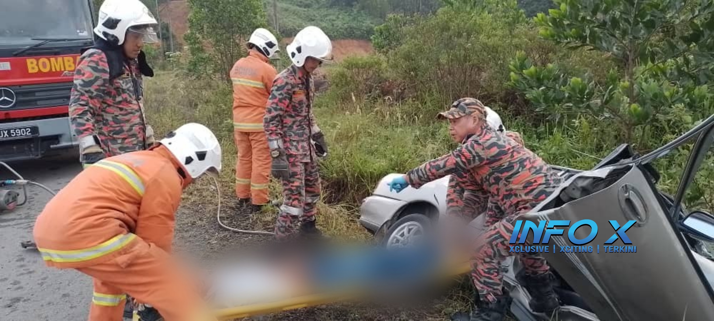 PAPAR: Seorang lelaki maut selepas kereta dipandunya terbabas ke dalam parit di Jalan Lama Papar, di sini, hari ini.
