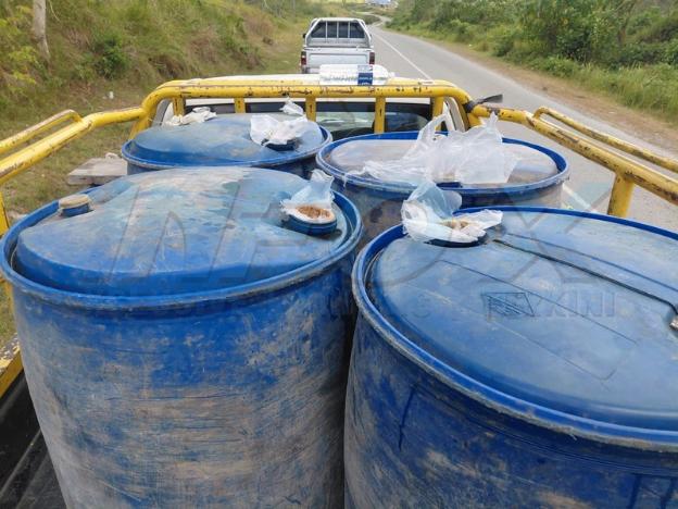 Katanya, pemeriksaan lanjut kemudian menemukan empat tong drum berisi minyak diesel dengan anggaran kuantiti 800 liter.