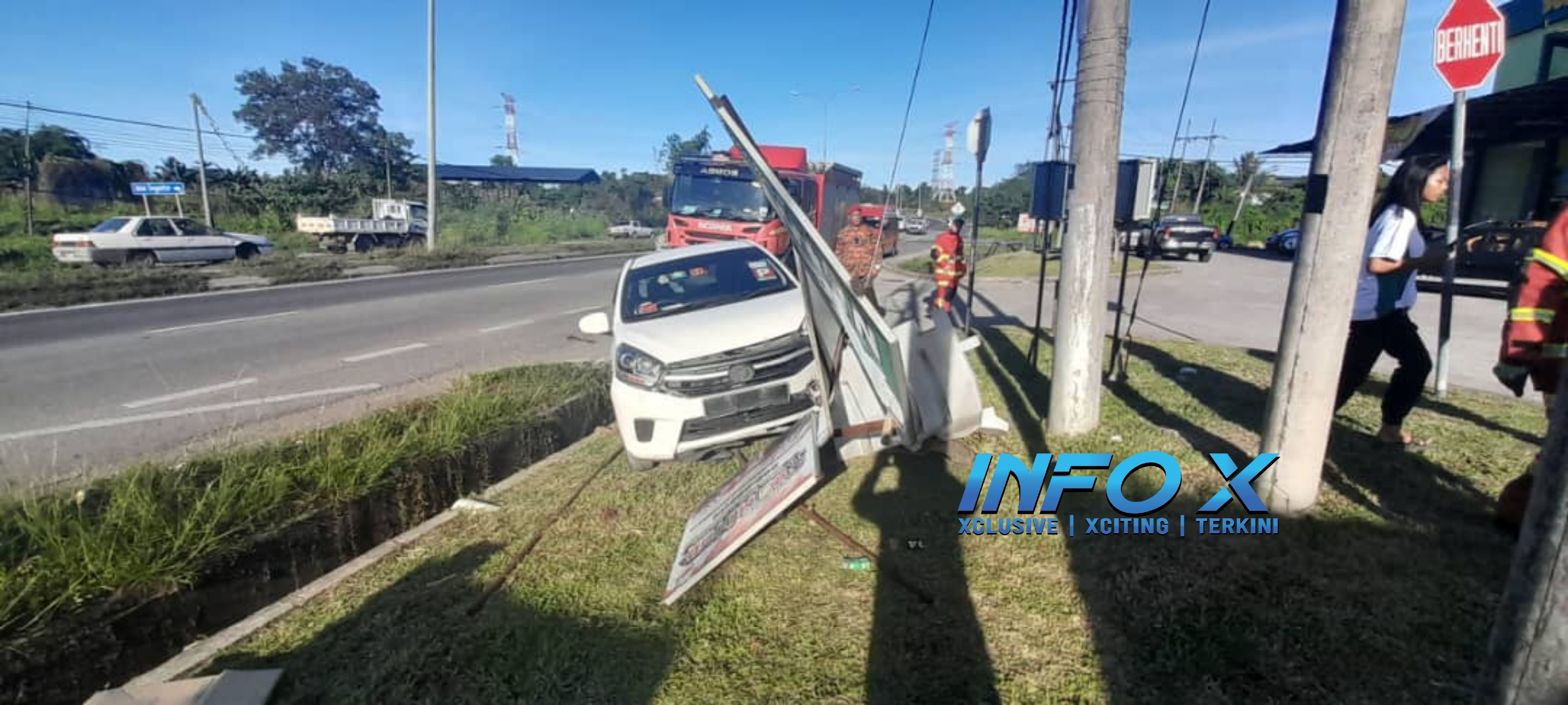 “Tindakan pasukan bomba membuat pemeriksaan di sekitar lokasi kejadian bagi memastikan tiada bahaya lain. – Info X