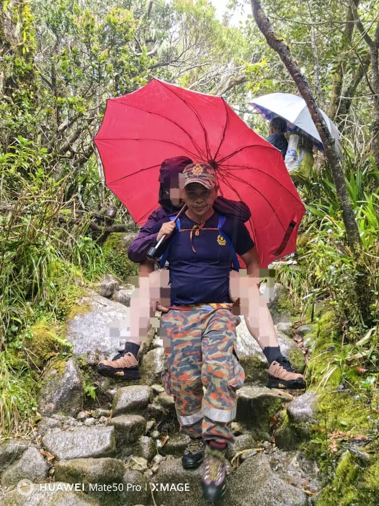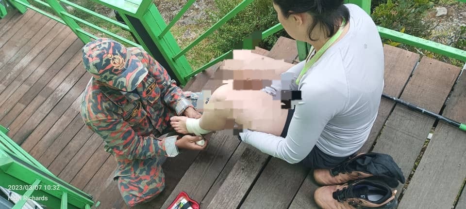 Mangsa diberi rawatan awal sebelum dibawa turun ke Timpohon Gate.