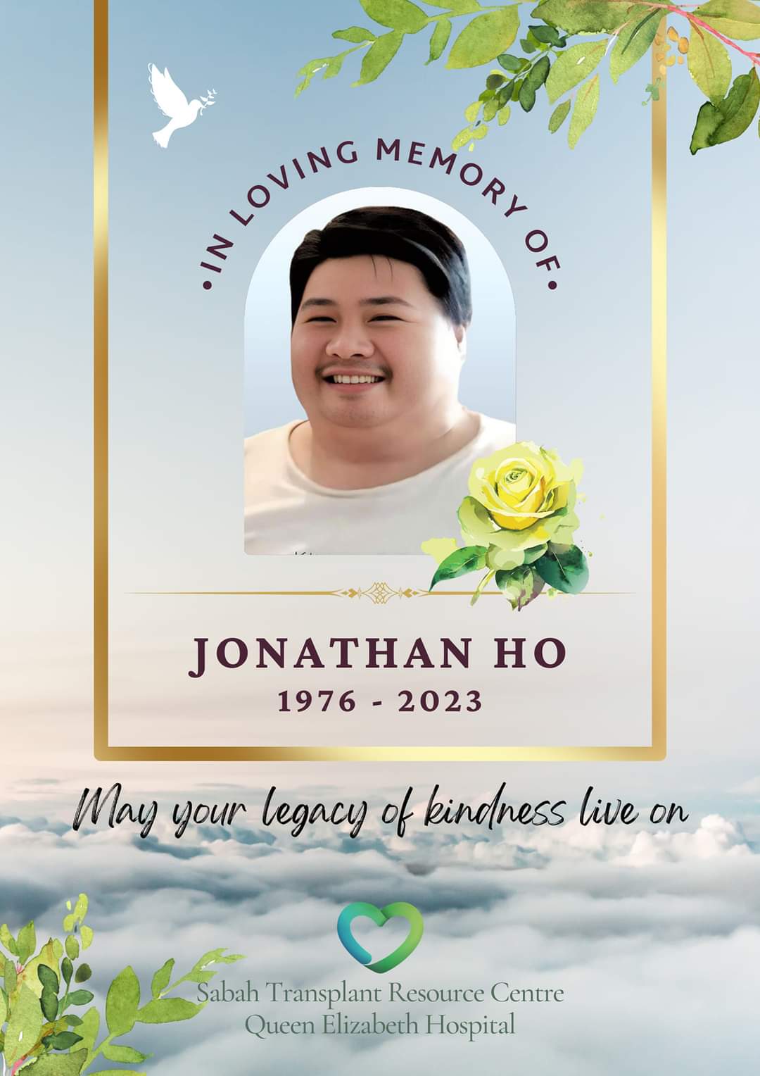Pengarah Jabatan Kesihatan Negeri Sabah (JKNS), Datuk Dr Asits Sanna, berkata, mendiang Jonathan Ho, 47, dari Kampung Tuunon Kolopis, Penampang, dekat sini mendermakan sepasang matanya kepada dua pesakit atas persetujuan keluarga, baru-baru ini.