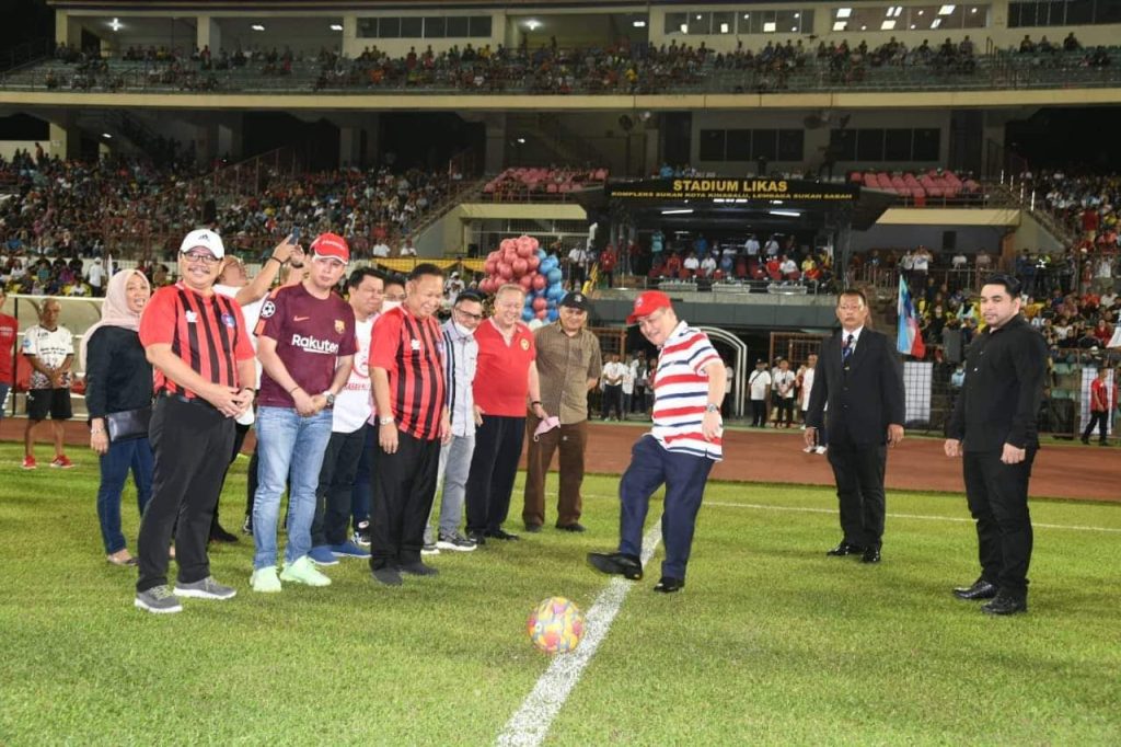 Hajiji menyepak bola sebagai gimik pelancaran sebelum sepak mula final kejohanan Pesta Bola Sepak Merdeka Piala SMJ 2022 September lalu.