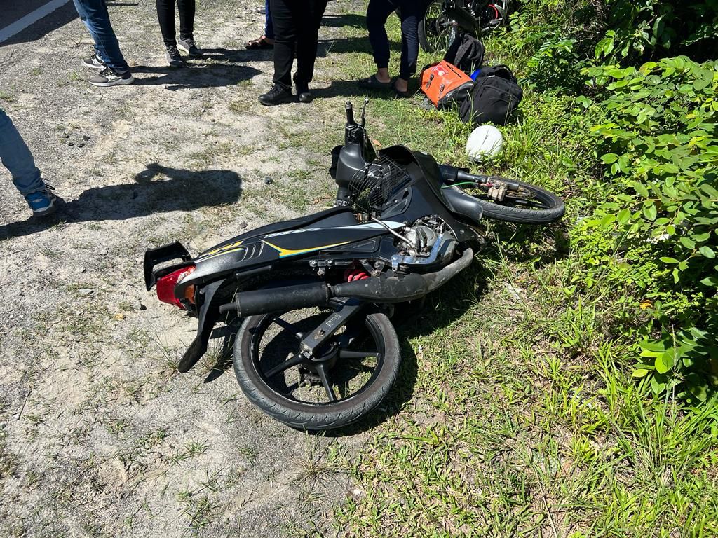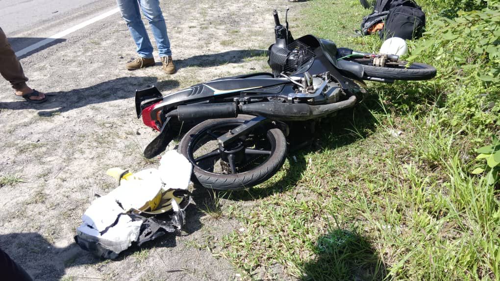 “Sebaik tiba di lokasi kejadian, mangsa dipercayai memotong sebuah lori dan telah terlanggar belakang sebuah motosikal di hadapan lalu hilang kawalan dan terjatuh ke lorong kiri.