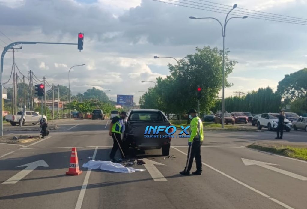 KOTA KINABALU: Seorang lelaki maut selepas motosikal yang ditunggang merempuh belakang sebuah kenderaan pacuan empat roda di Jalan Lintas dekat Puspakom, di sini, hari ini.