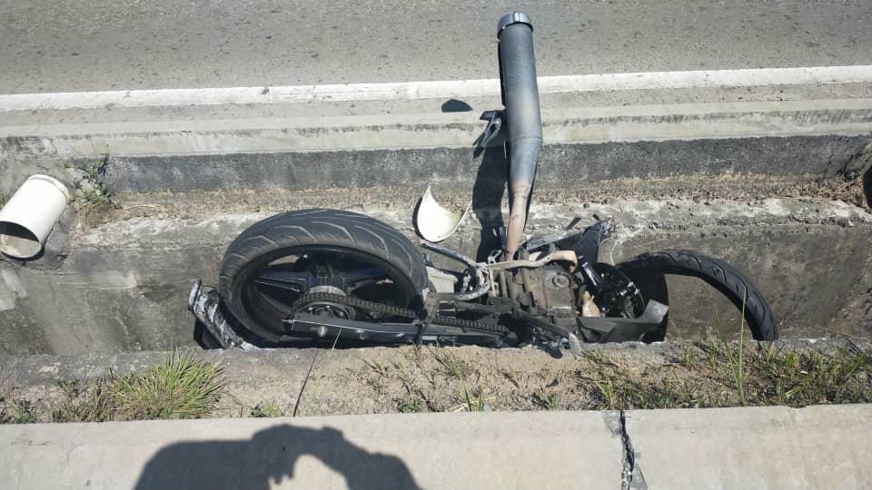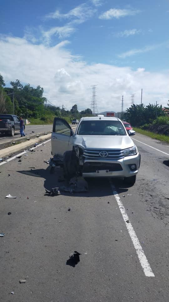 “Pemandu Toyota Hilux menekan brek dan telah mengelak ke lorong kiri namun motosikal itu yang ditunggamg secara melulu melanggar hadapan kenderaannya.”Akibat perlanggaran itu, lelaki bersama motosikal tercampak ke dalam parit yang berada di tengah-tengah pembahagi jalan,” katanya dalam kenyataan media, hari ini.