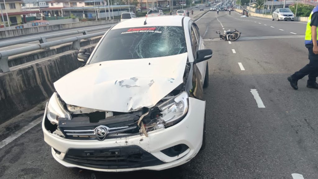 “Ketika melalui laluan bertingkat, sebuah kereta jenis Proton Saga dipandu lelaki tempatan berusia 28 tahun terlanggar motosikal ditunggang mangsa.