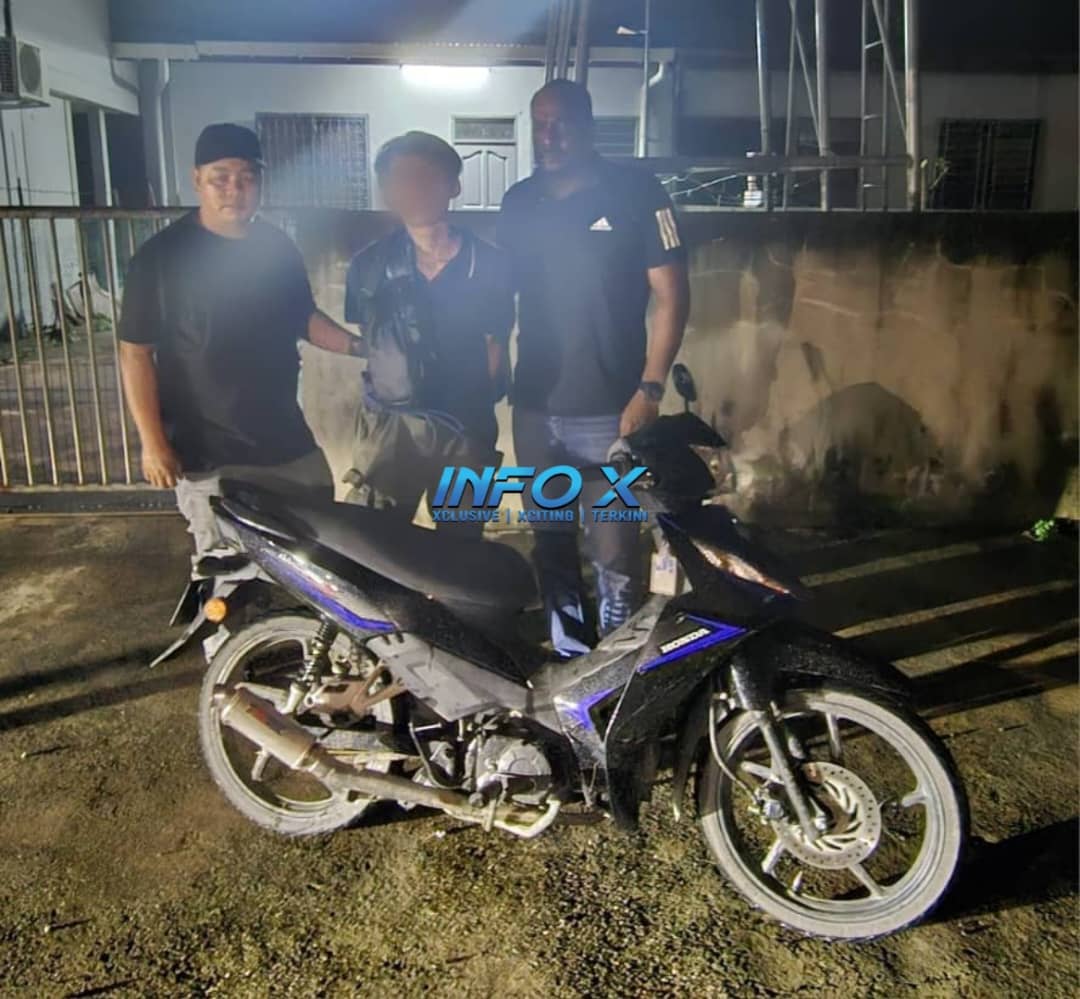 Azmi berkata, pasukan operasi turut merampas sebuah motosikal, kerambit, beg, dua telefon bimbit serta pakaian suspek.