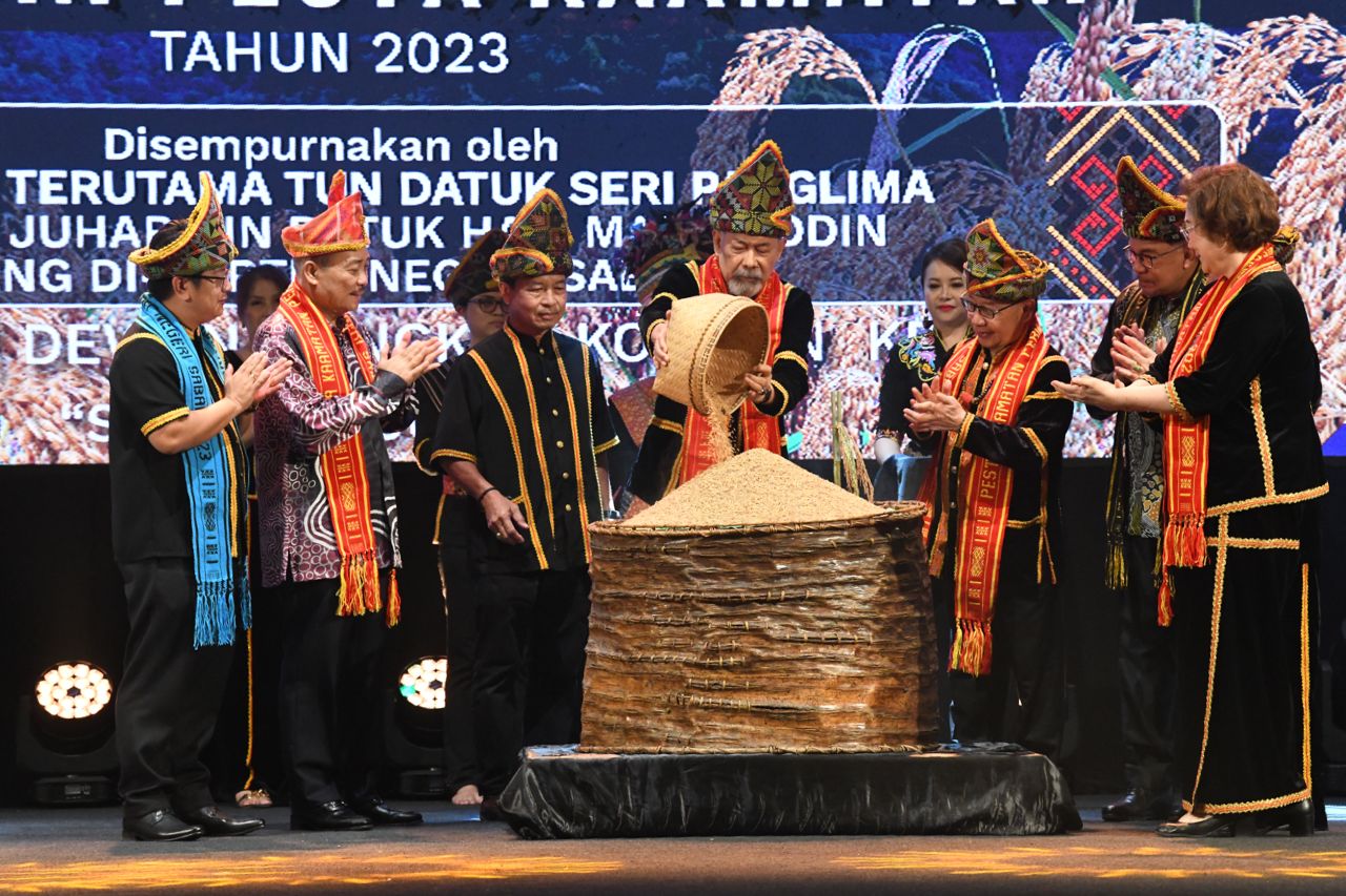 Sambutan Pesta Kaamatan peringkat negeri 2023 dirasmikan oleh Yang Dipertua Negeri Sabah, Tun Juhar Mahiruddin.