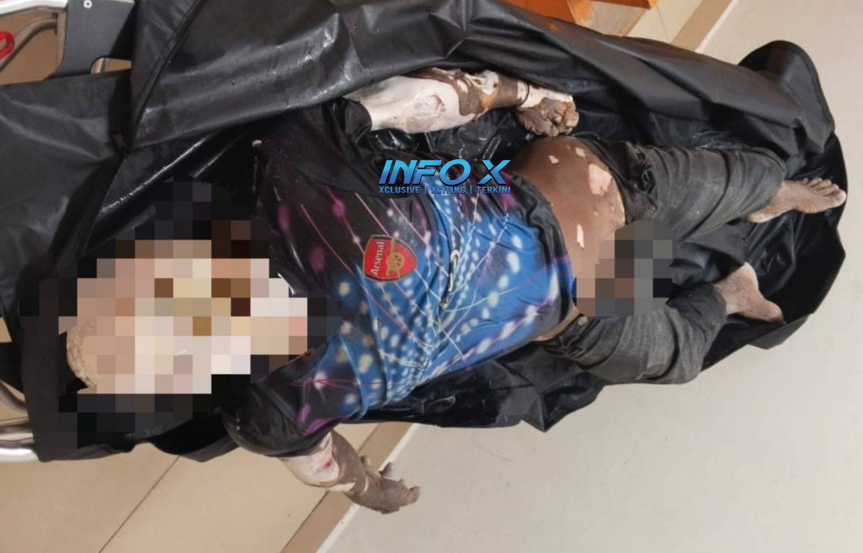 “Ciri-ciri fizikal mayat adalah tinggi 167 sentimeter dan memakai baju warna hitam corak biru, terdapat lambang tertulis Arsenal serta memakai seluar jeans panjang warna hitam jenama Bentop.