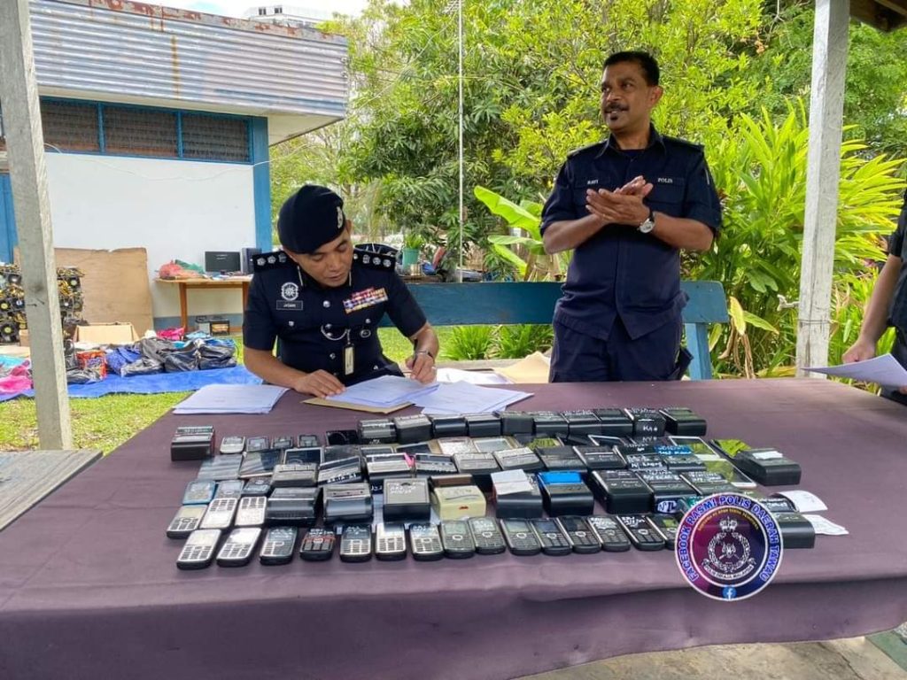 Turut dimusnahkan termasuk 100 unit telefon bimbit dan mobile printer, (2) unit bateri kereta, (7) bilah parang, (1) set komputer meja, (12) helai baju, (12) helai seluar panjang, (2) buah penyapu dan (80) kotak bunga api jenis pop pop.