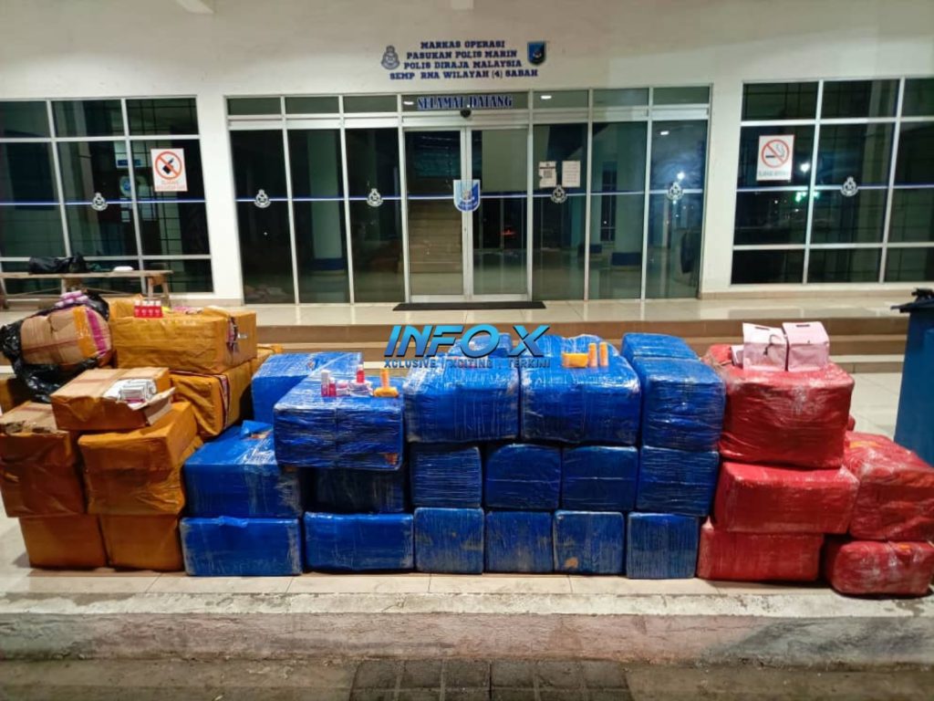 Semua barangan berkenaan dirampas hasil pemeriksaan anggota PPM Semporna selepas terserempak dengan dua bot laju dalam keadaan mencurigakan pada jam 8.30 malam.