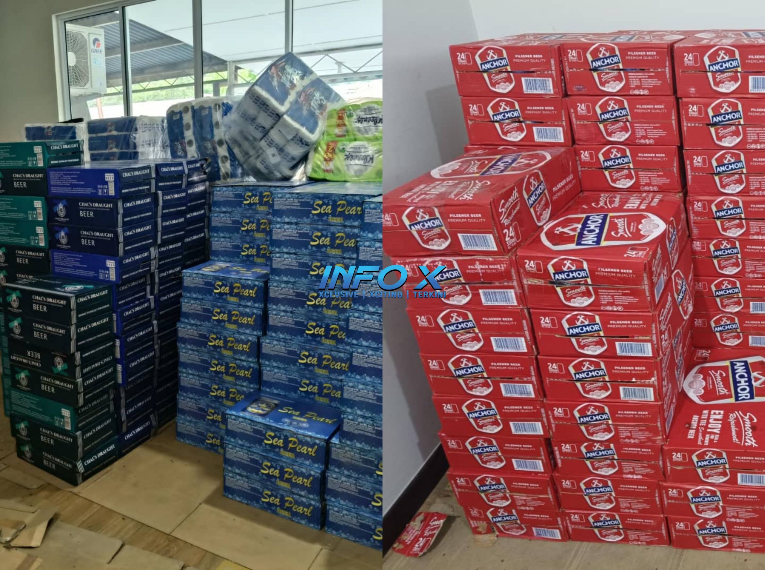 “Antara jenama minuman keras yang ditemui ialah Sea Pearl (60 karton), Anchor (50 karton), Chal’als Draught Biru (40 karton) dan Chal’s Draught Hijau (16 karton),” katanya ketika dihubungi, hari ini.