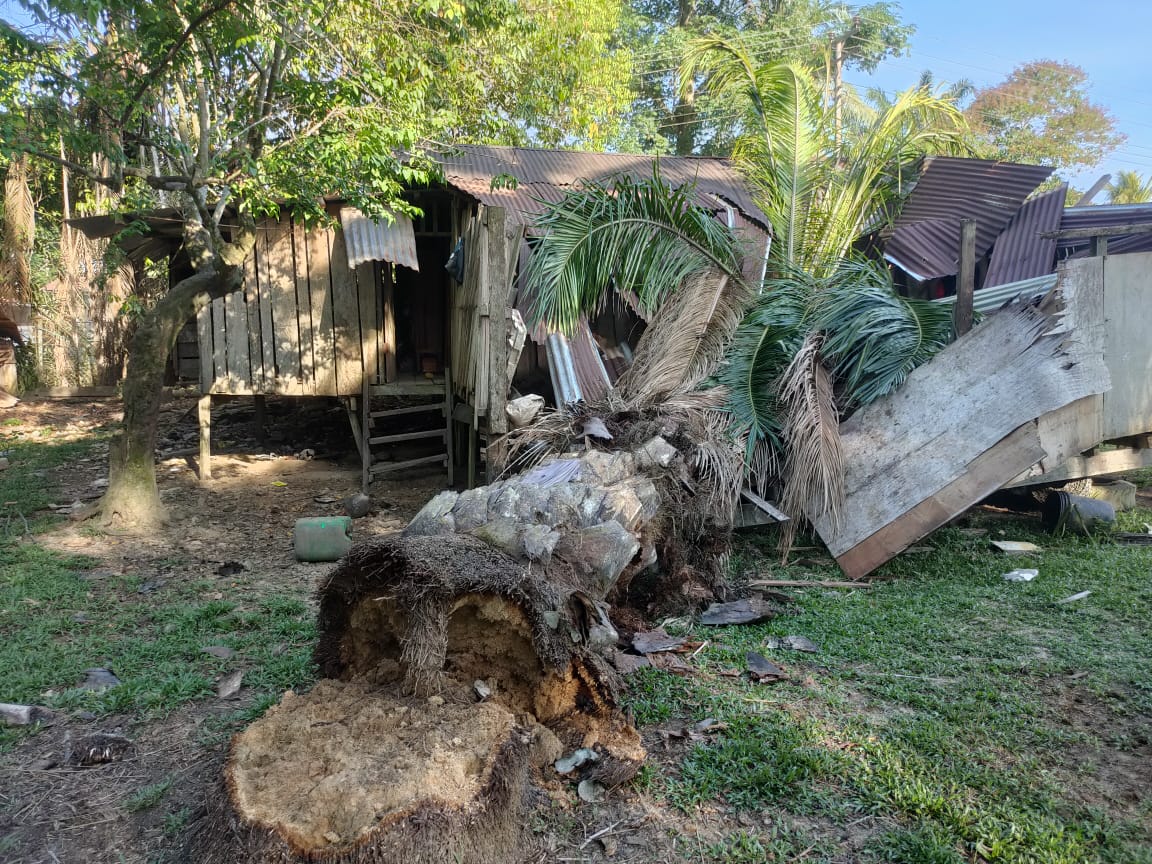 Kejadian kira-kira jam 7 pagi itu juga menyebabkan kerosakan sebanyak 70 peratus pada bahagian bumbung rumah berkenaan.
