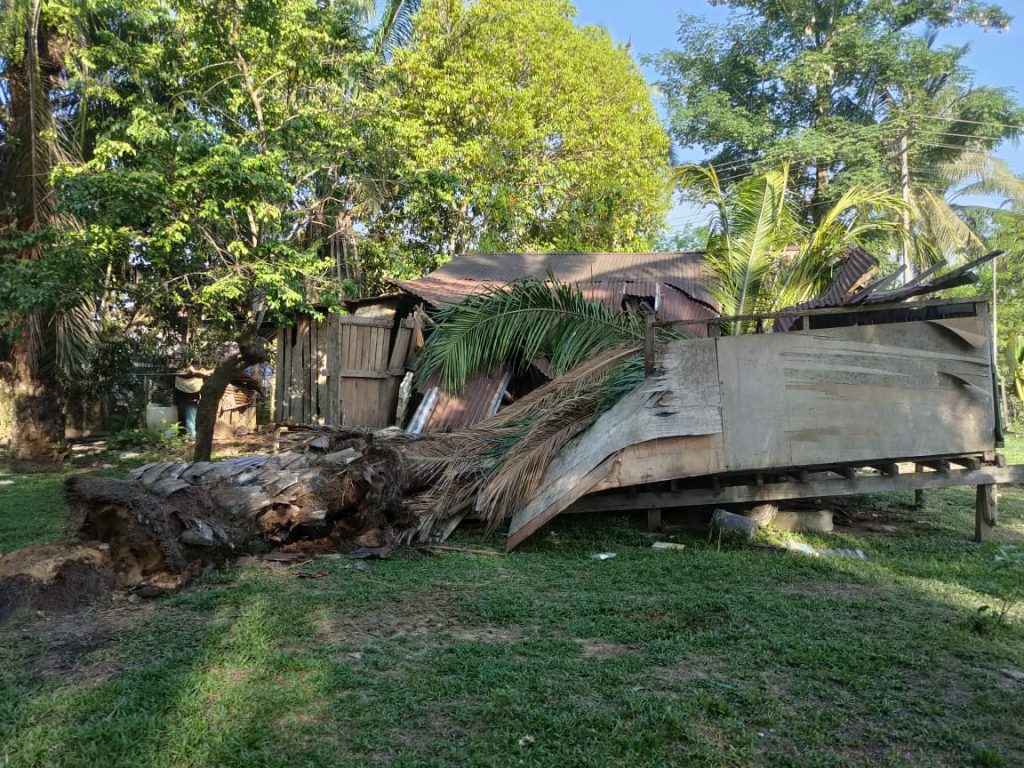 KOTA MARUDU: Seorang remaja perempuan cedera selepas pokok tumbang menghempap kediaman keluarganya di Kampung Tandek, di sini, pagi tadi.