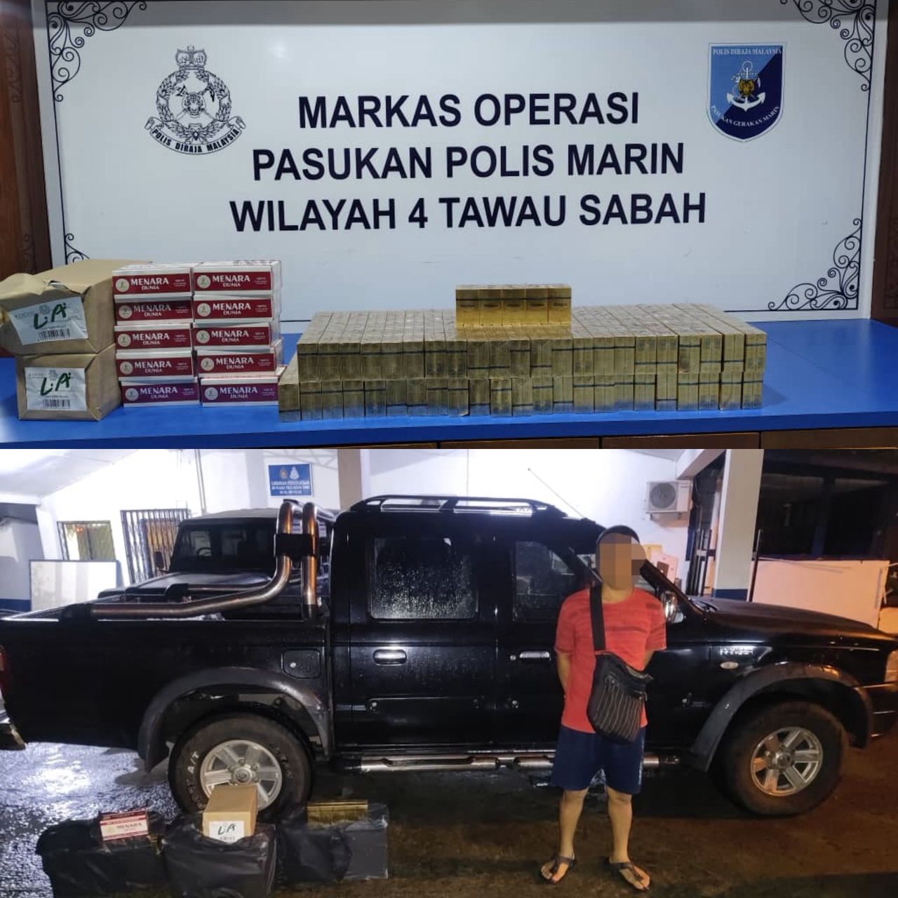 “Suspek dan semua rokok seludup yang dianggarkan bernilai RM63,240 itu dibawa ke Markas Operasi PPM Tawau untuk tindakan lanjut,” katanya dalam kenyataan, hari ini.