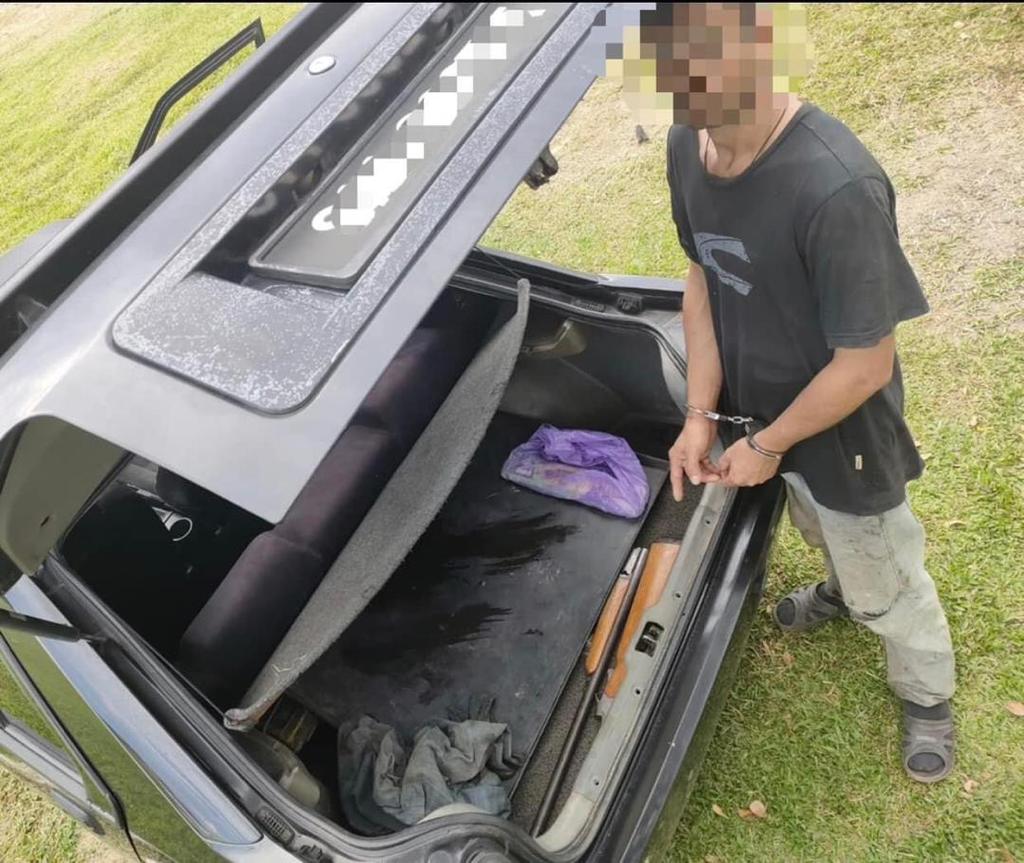 “Pemeriksaan lanjut mendapati di bahagian belakang bonet kereta turut menemui satu laras senapang jenis bakakuk,” katanya dalam kenyataan media, hari ini.
