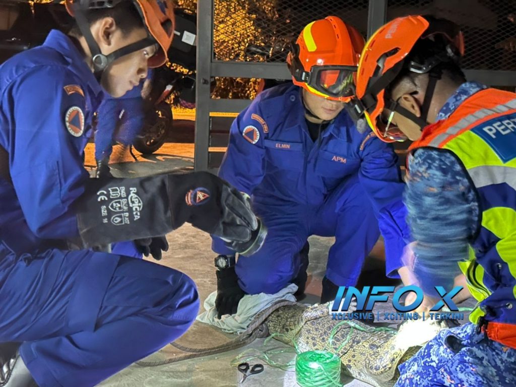 “Selepas 15 minit, akhirnya buaya seberat 35 kilogram berjaya ditangkap dengan menggunakan peralatan khas,” katanya ketika dihubungi, hari ini.