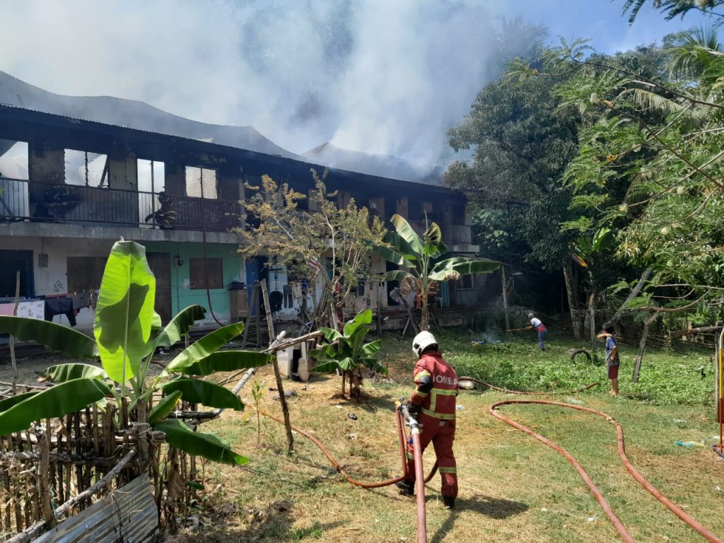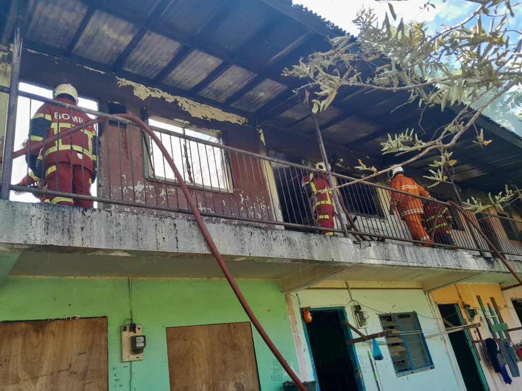 Sederet pintu kuarters MPS di Jalan Batu 1 ½, Sandakan musnah terbakar. – Foto/Bomba