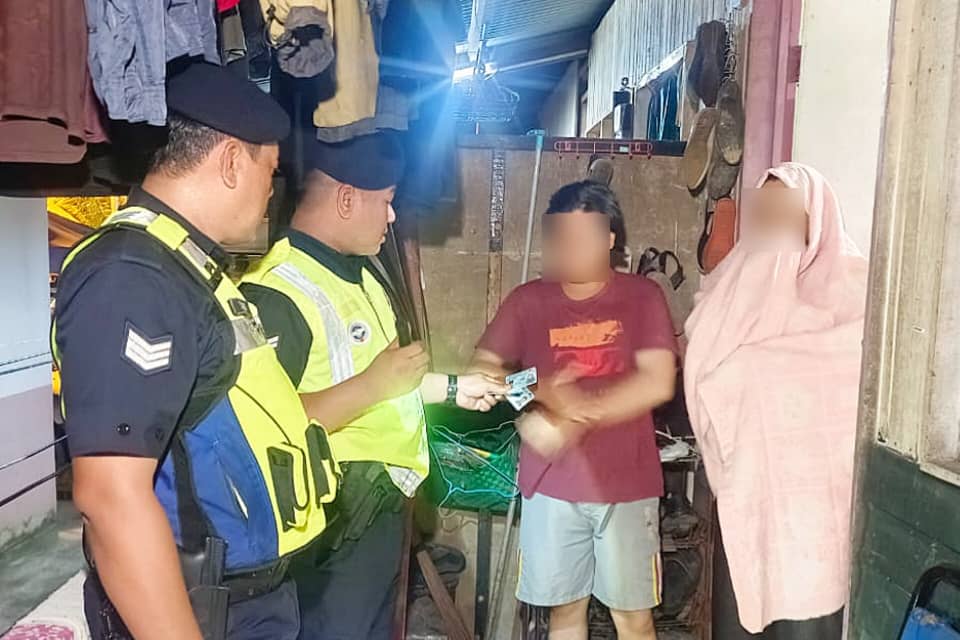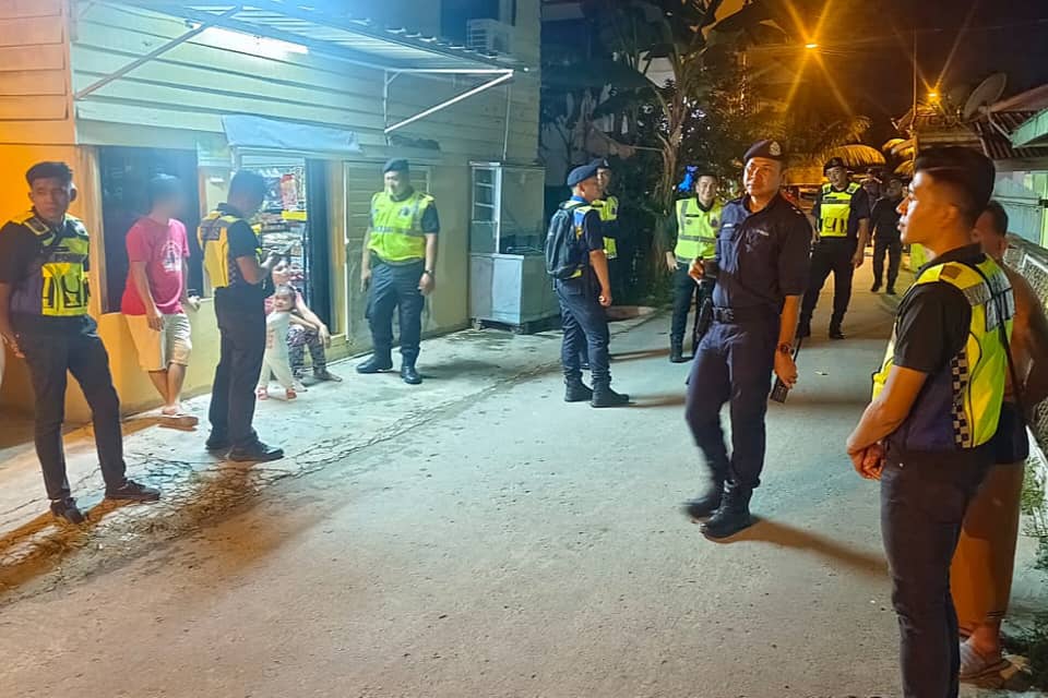 Polis dan Imigresen menjalankan Operasi Bersepadu membanteras PATI di kawasan setinggan di Kampung Tebongon, Putatan. – Foto/PDRM