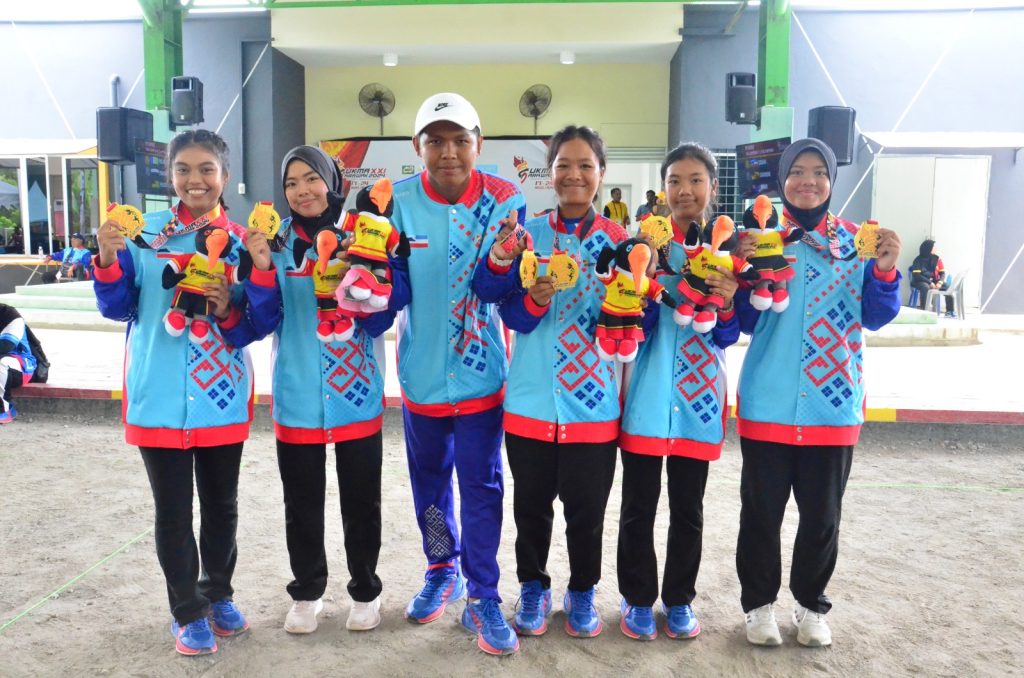 Pemain emas petanque Sabah, (dari Kiri) Maxivianna, Siti Nur Vivianah, Muhammad Aeqhmal, Marysa, Thadis Henhera dan Siti Noor Ellyshatul.