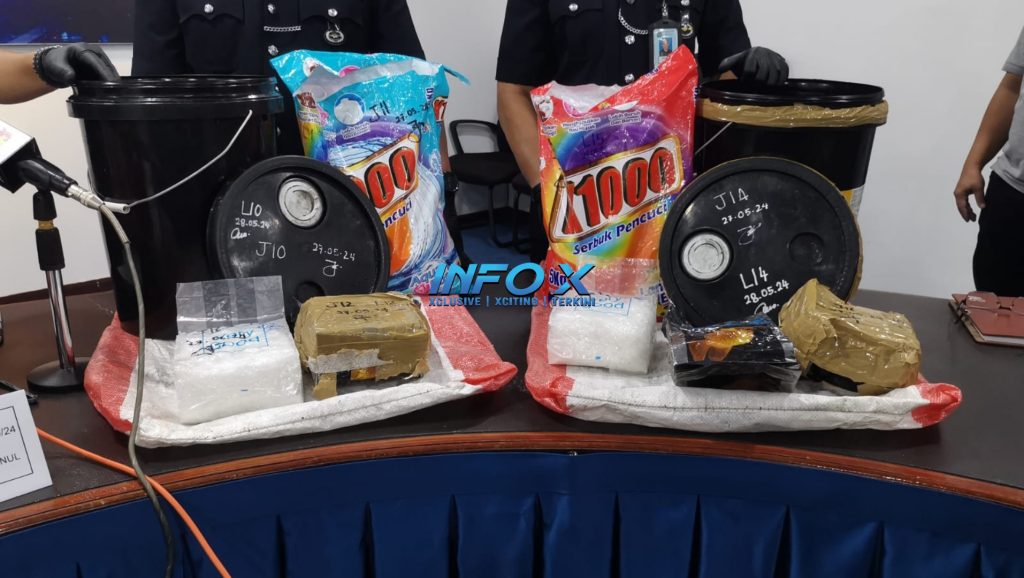 “Modus operandi suspek adalah memasukan dadah berkenaan ke dalam plastik sabun cuci serbuk bagi mengelak dikesan pihak berkuasa dan diisi ke dalam tong,” katanya.