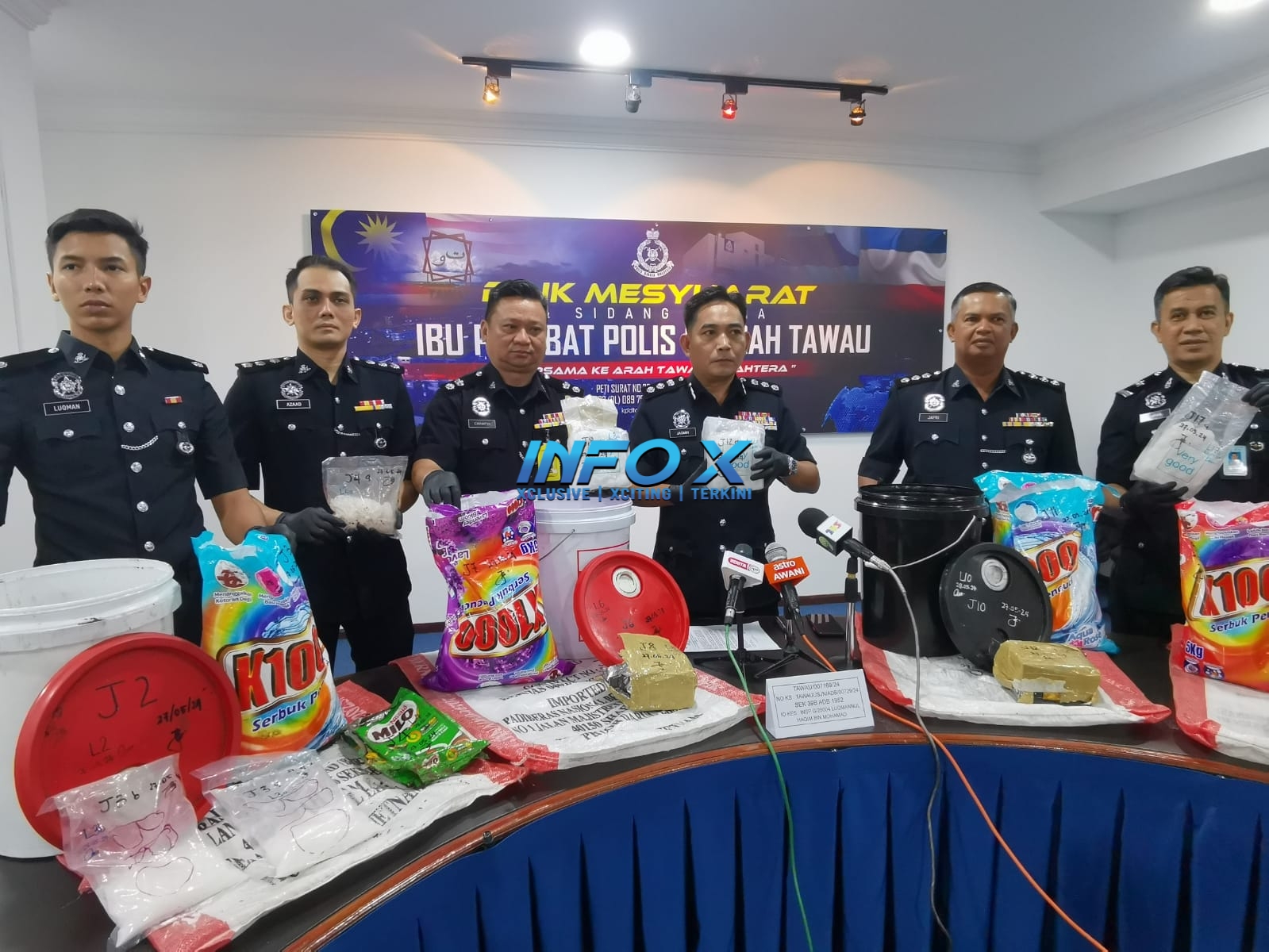 “Ketika pemeriksaan lanjut dijalankan, pasukan polis mengesan seorang lelaki dalam keadaan mencurigakan membawa empat tong berisi sabun cuci serbuk.