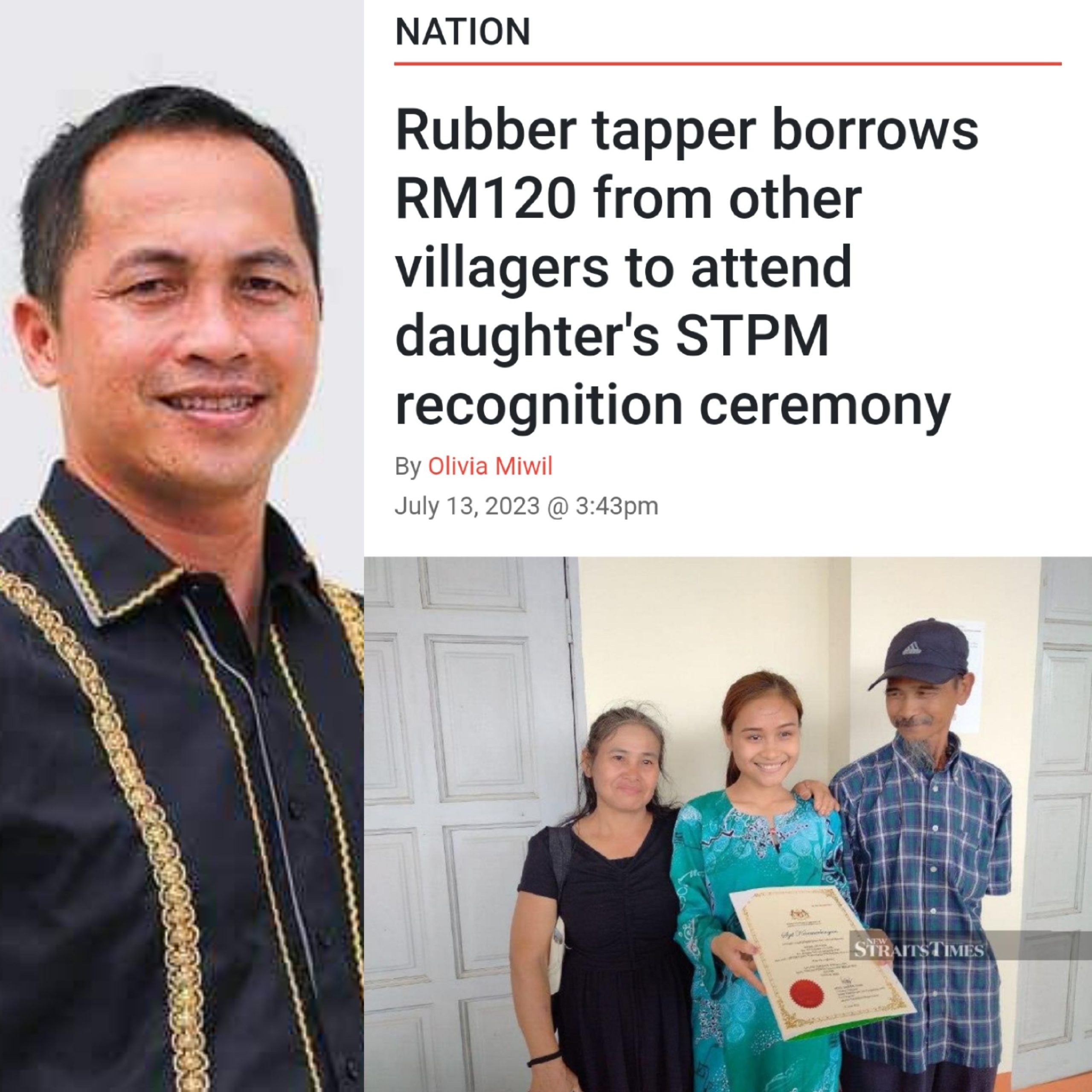 Kisah pengorbanan keluarganya yang terpaksa meminjam duit dari penduduk kampung bagi membolehkan mereka dan Arnie menghadiri majlis penghargaan pelajar cemerlang STPM, di Kolej Tingkatan Enam Kota Kinabalu, di sini, menjadi tular di media sosial sejak semalam.