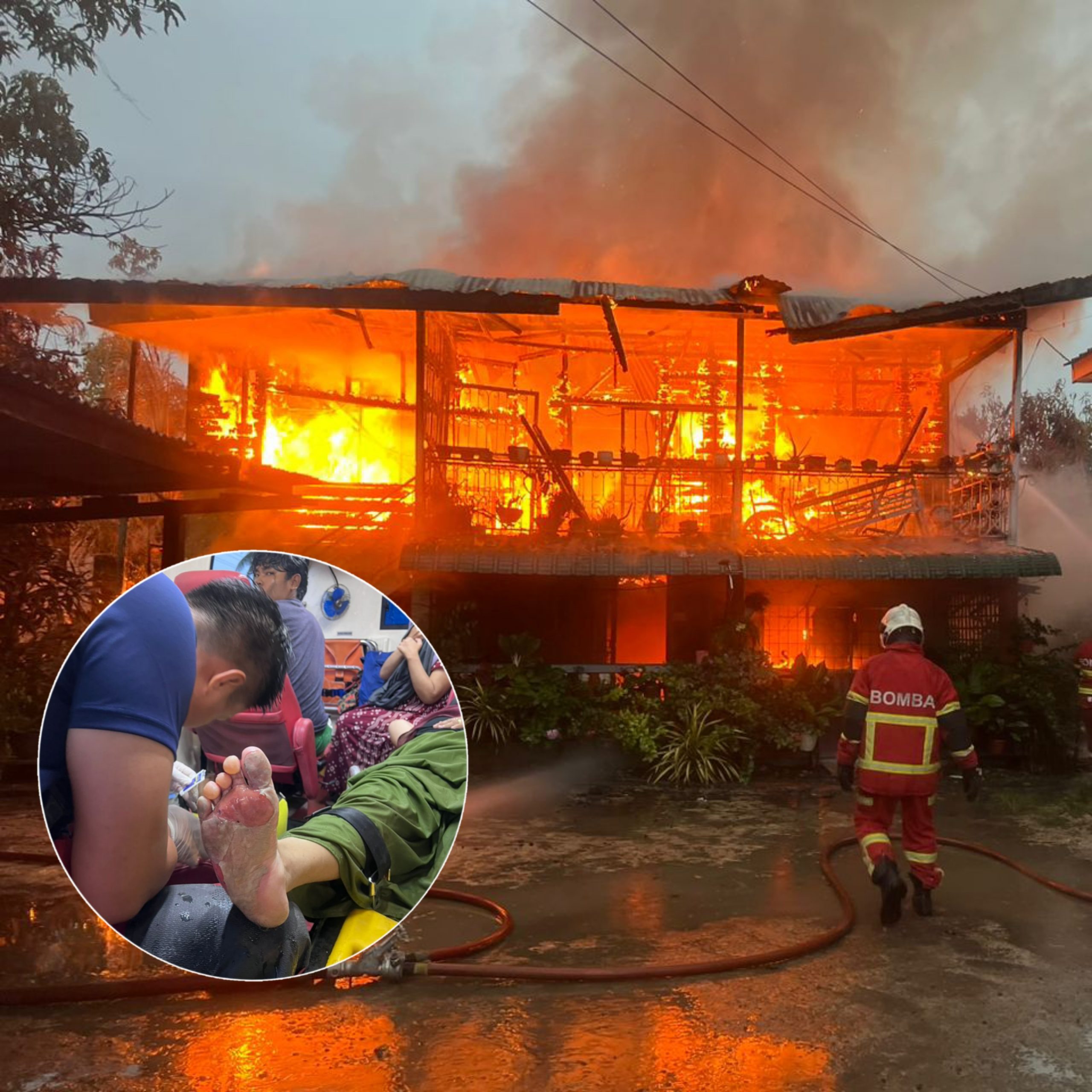 TAWAU: Tiga cedera dan melecur apabila rumah dihuni mereka musnah terbakar dalam kejadian di Kampung Rawa-Rawa, Batu 4, di sini, awal pagi tadi.