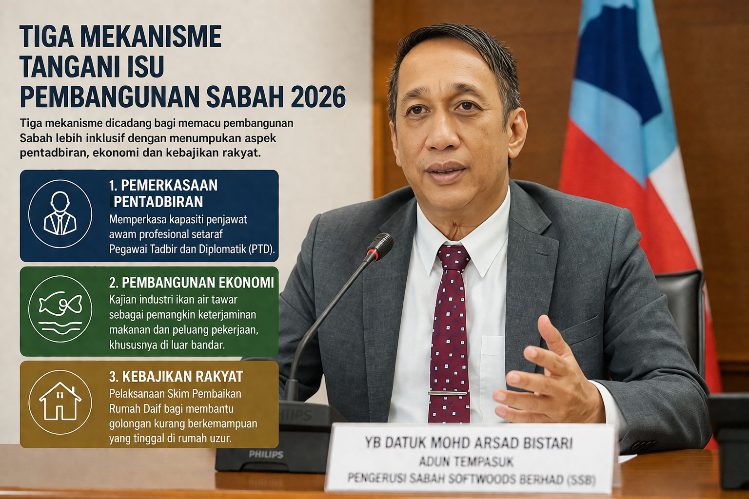 KOTA KINABALU: Tiga mekanisme dicadang bagi memacu pembangunan Sabah lebih inklusif dengan menumpukan aspek pentadbiran, ekonomi dan kebajikan rakyat.