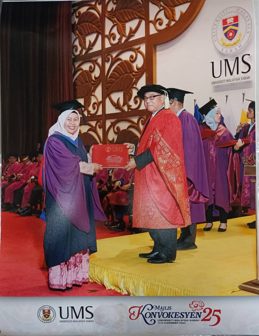 Beliau berkata, kejayaan yang dicapai oleh Siti Khairunnisak adalah contoh terbaik kepada seluruh warga Maritim Sabah dan Labuan untuk menyambung pelajaran ke tahap tertinggi dan mencapai cita-cita yang diimpikan.