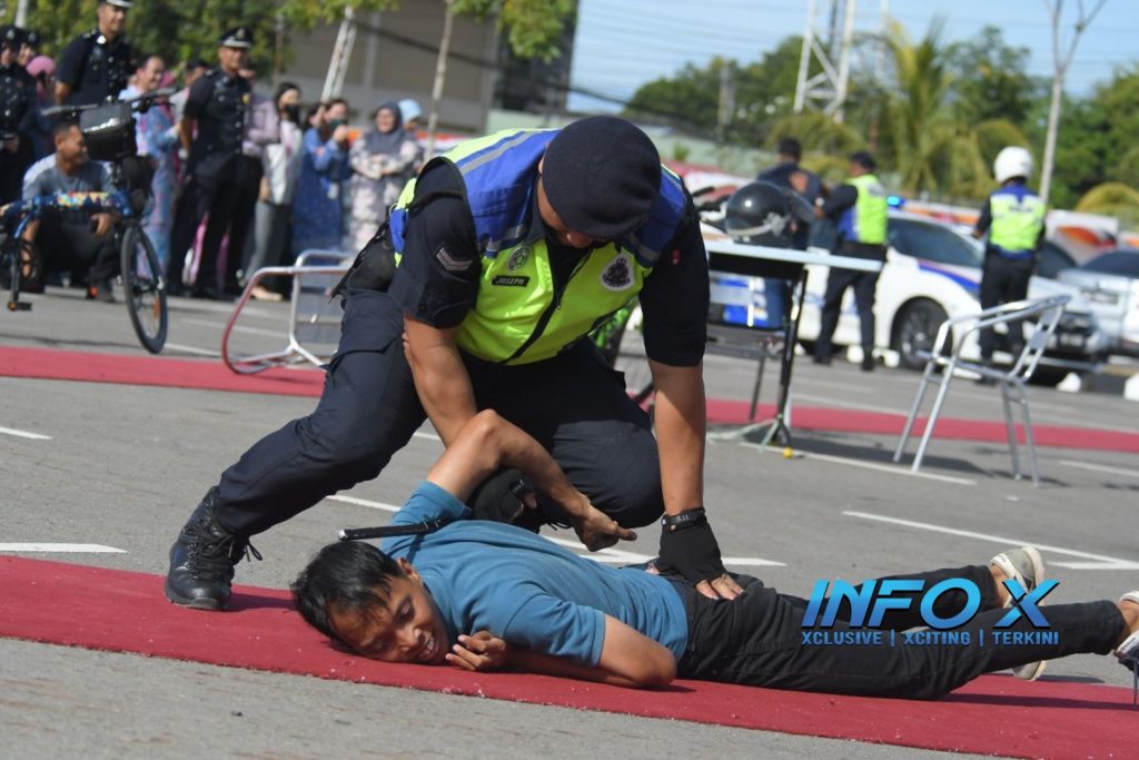 Seterusnya acara diteruskan dengan babak lakonan menumpaskan penjenayah yang dijayakan oleh barisan pegawai kanan, anggota IPD Kota Kinabalu di bawah arahan Timbalan Ketua Polis Daerah Kota Kinabalu, Superintendan Kalsom Idris.