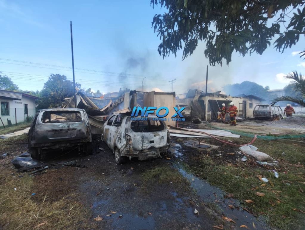 “Kebakaran membabitkan dua rumah jenis separuh kekal dan empat kenderaan yang musnah terbakar.