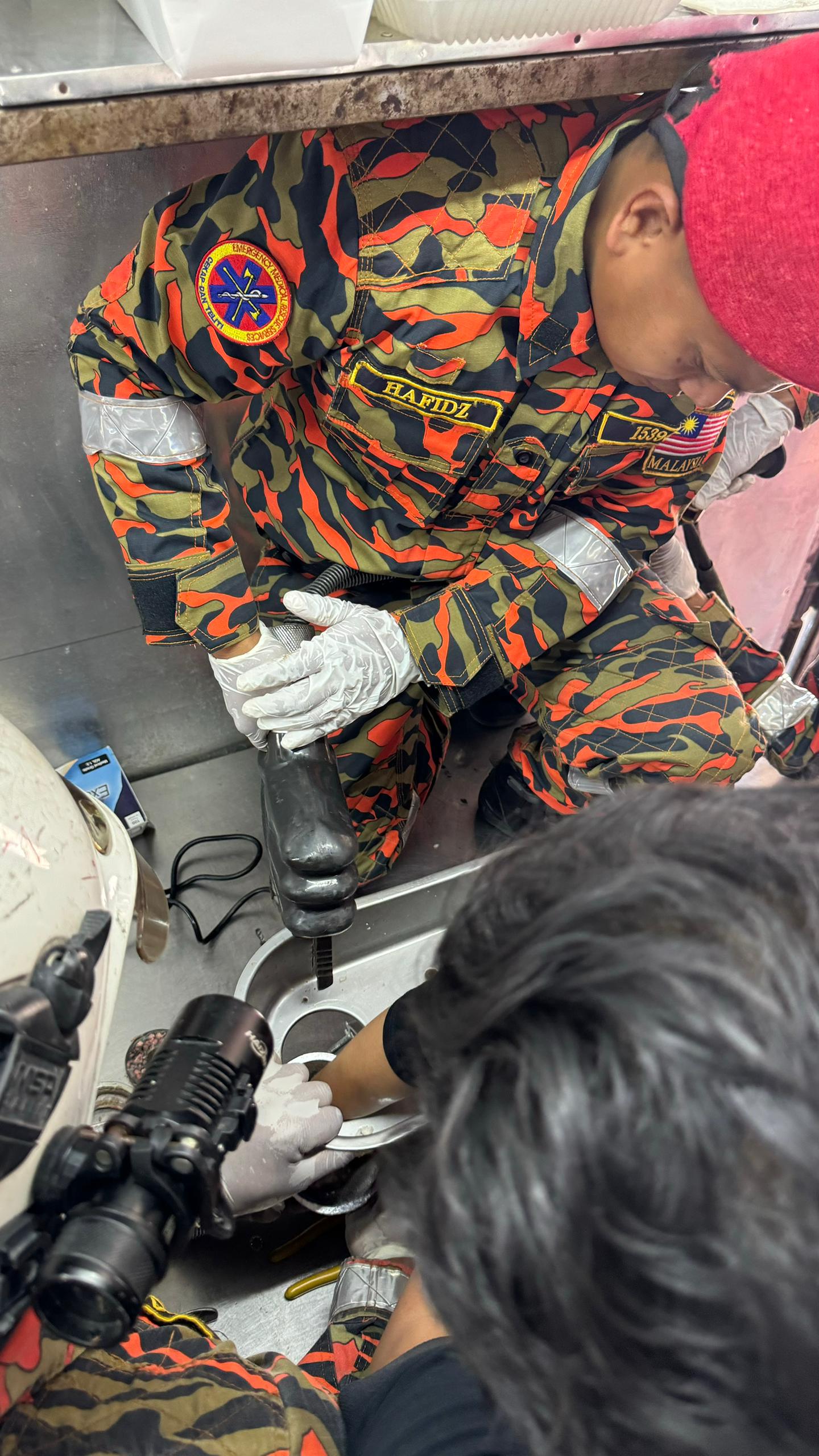 Katanya, sepasukan pegawai dan anggota bersama jentera serta van Unit Bantuan Perkhidmatan Kecemasan (EMRS) terus digerakkan ke lokasi kejadian.