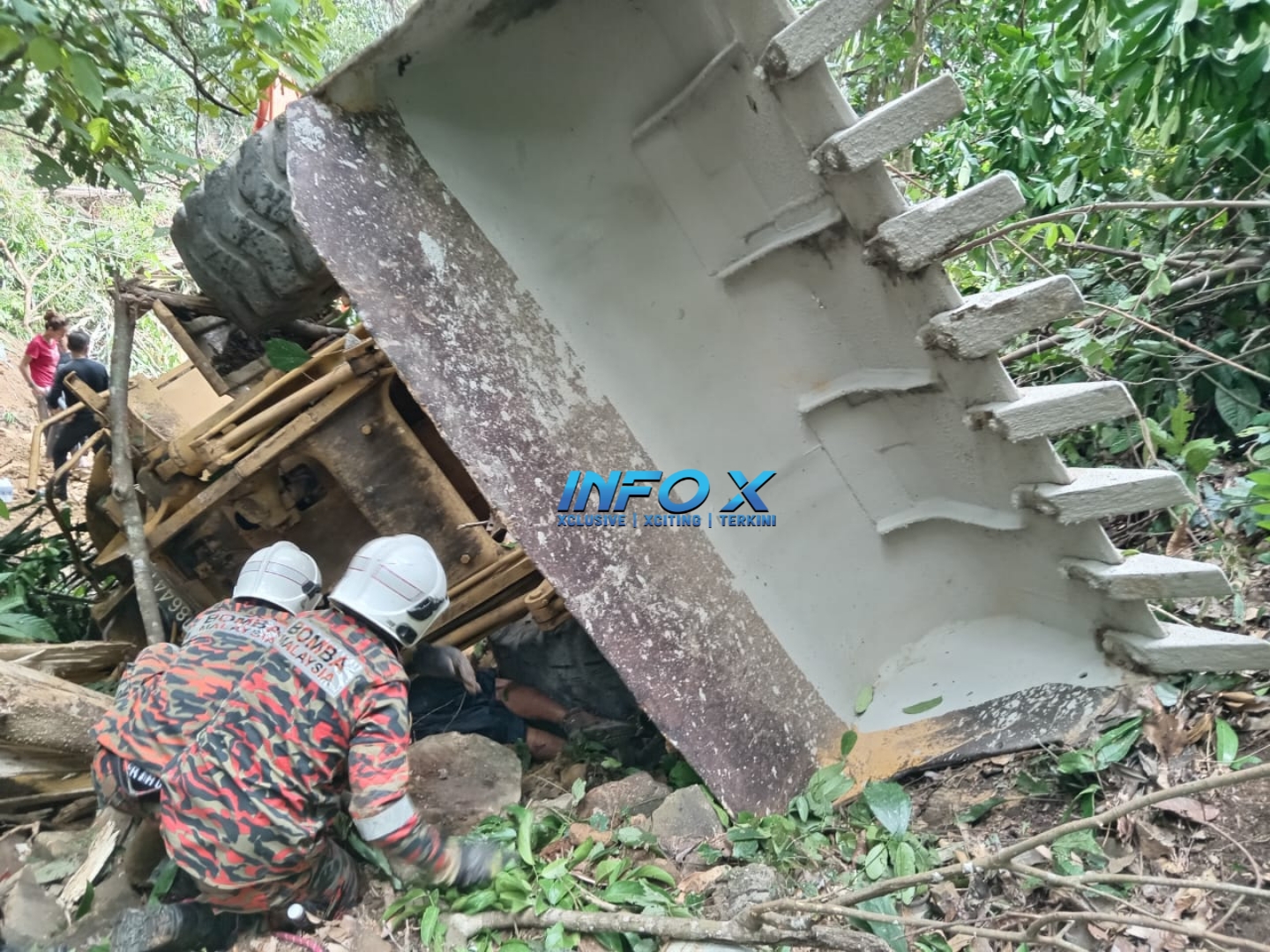 “Pasukan bomba dimaklumkan kemalangan membabitkan sebuah jentera berat jatuh gaung sedalam 80 meter ketika menjalankan kerja-kerja pembersihan ladang.
