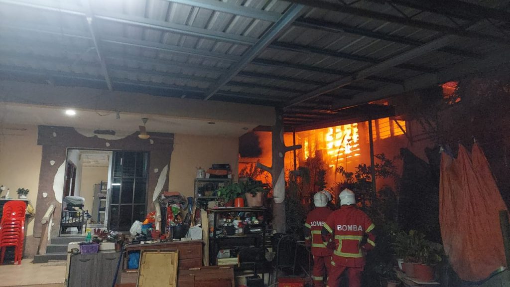“Kebakaran membabitkan sebuah rumah jenis separuh kekal dua tingkat terbakar sepenuhnya.